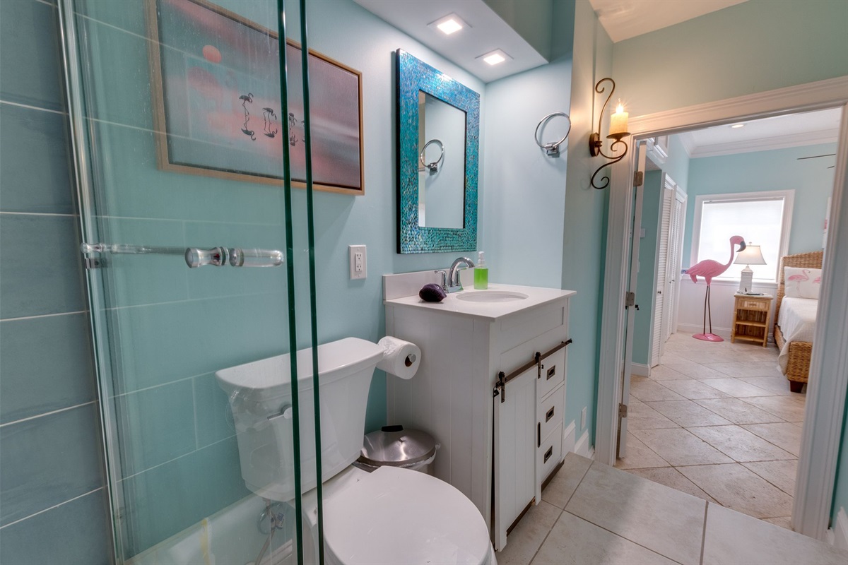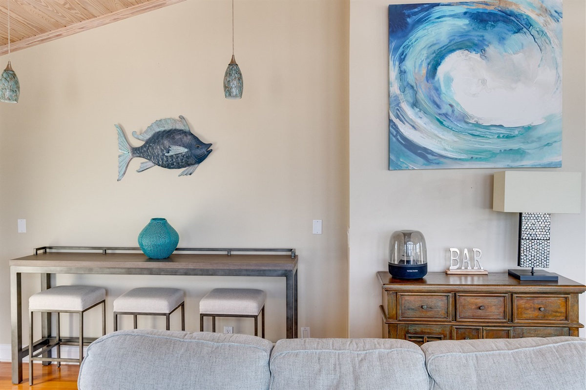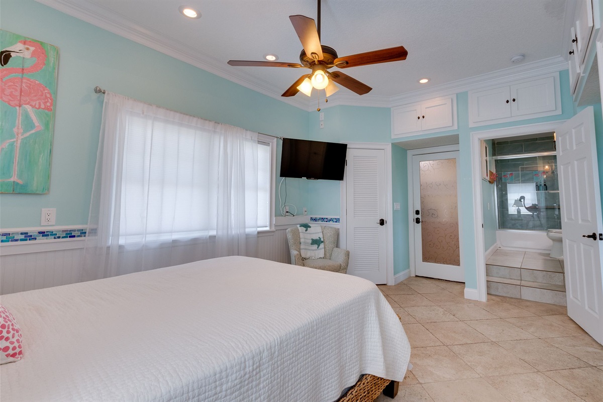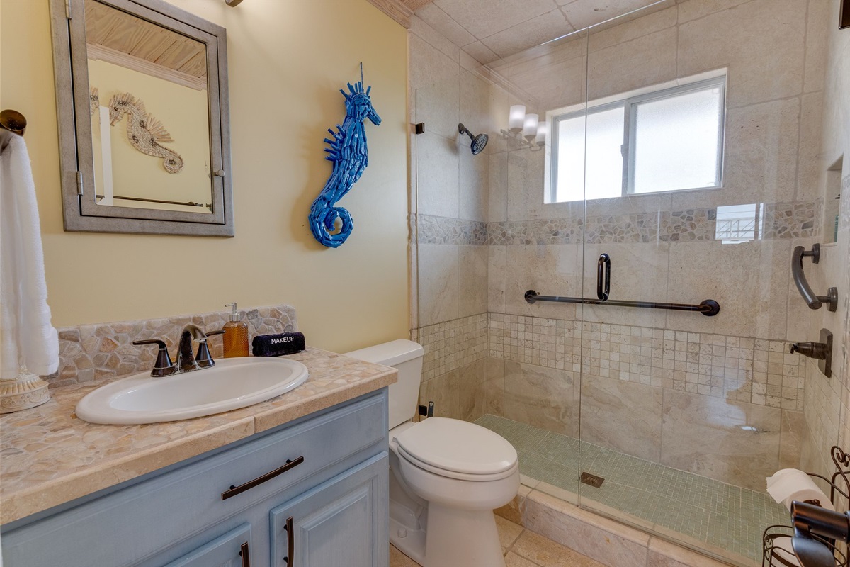 At Oyster House,come relax in the home’s elegant yet comfortable ambiance. Take in beautiful sunrises and the panoramic view of the Atlantic Ocean. In the evening watch the sunset over the marsh and Intracoastal waterways framing downtown St. Augustine from the multiple decks of the home. At Oyster house , oyster shells were utilized in this two level 4 bedroom, 4 bathroom en suite private residence. Oyster house sits central to bustling North Beach/ Vilano area providing ample opportunities for dining, entertainment, sports and shopping. Or if you prefer enjoy the laid back calm this home would surely deliver. This is a fully equipped beach home, ready for a broad range of fun and adventure. The beach is just a 2 minute walk across the street to your private beach access, that you can see from the front door. Oyster House ….creating lasting memories!