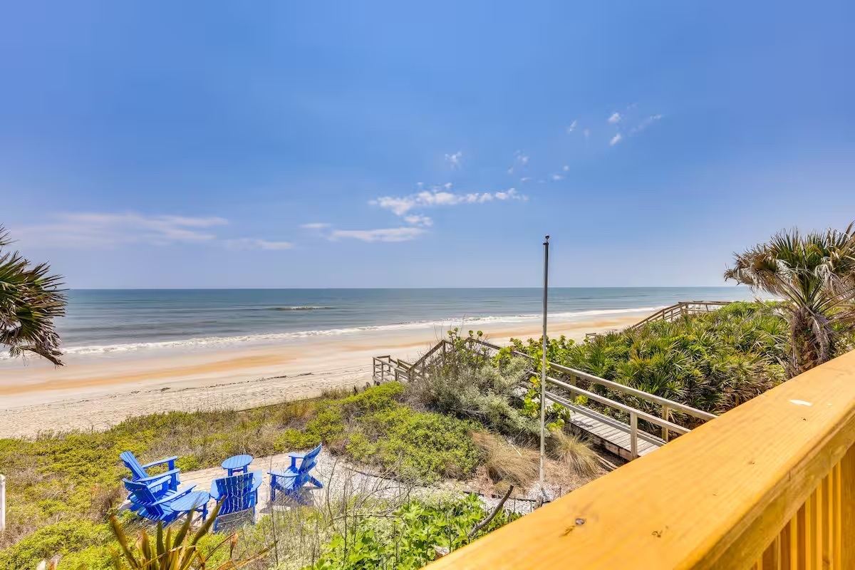 Welcome to Sandy Shores I, a stunning oceanfront getaway in Ponte Vedra Beach, Florida. This spacious 3-bedroom, 3-bathroom home is just steps from the beach, offering direct access to the sand. Perfect for families, friends, or couples, it features expansive ocean views, oversized deck, and multiple indoor and outdoor gathering spaces. Need more room? Sandy Shores II, a neighboring 3-bedroom, 3-bathroom home, is available for larger groups. Experience the best of coastal living and relaxation.
